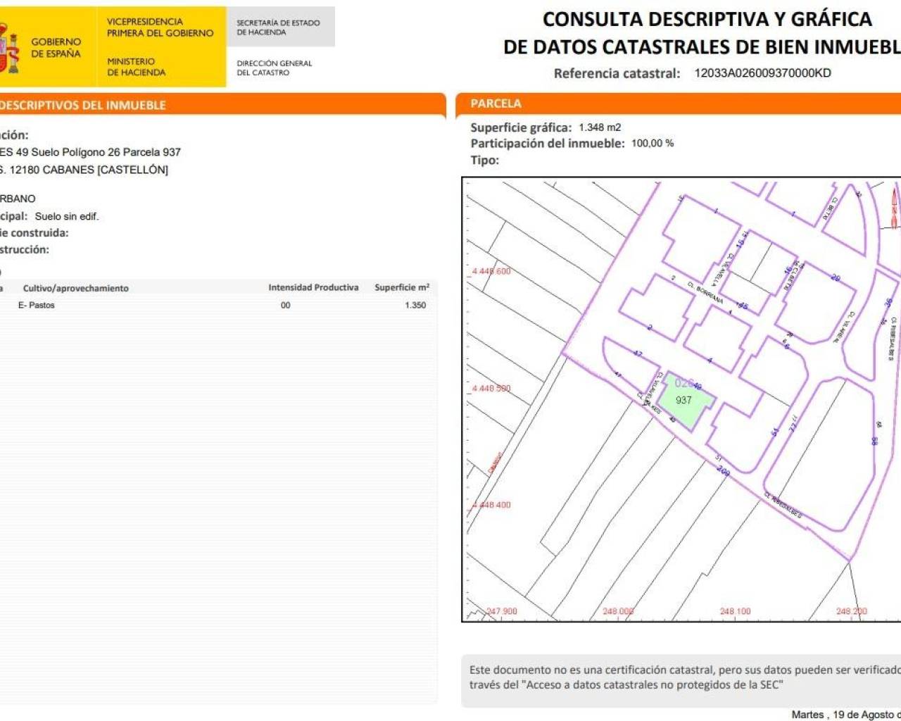 - Superficie registral: 1.353,00m².~- Edificabilidad máxima: 1.408m².~- Uso: Residencial.~- Tipología: Unifamiliar Adosado~~- Referencia catastral 12033A026009370000KD~~Nazca Alliance Real Estate Co es una inmobiliaria de compra venta de propiedades en la provincia de Castellón. Nazca Alliance vende villas, adosados, apartamentos, pisos , dúplex, áticos , estudios, casas rústicas, suelo urbano y negocios de la provincia de Castellón Costa Azahar.~~Si quiere vender un inmueble o conocer otras ofertas de nuestro catálogo, solo tiene que dejarnos sus datos y nuestro equipo comercial se encargará de todos los trámites.~~Puede contactar con nosotros mediante el formulario de contacto de esta misma página, llamando al teléfono 964 860 708 o en nuestras oficinas de la Plaza Clavé, 30, en Castellón de la Plana.~